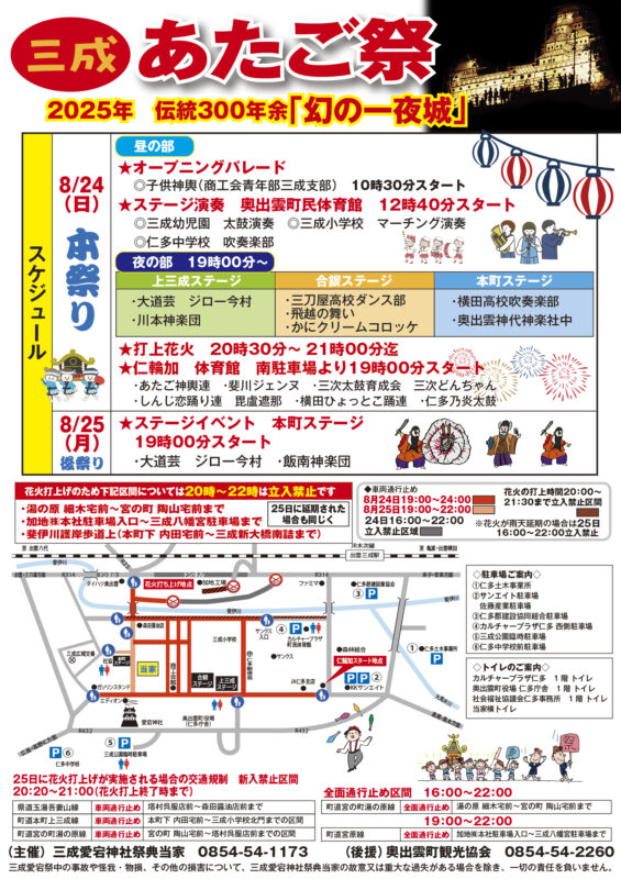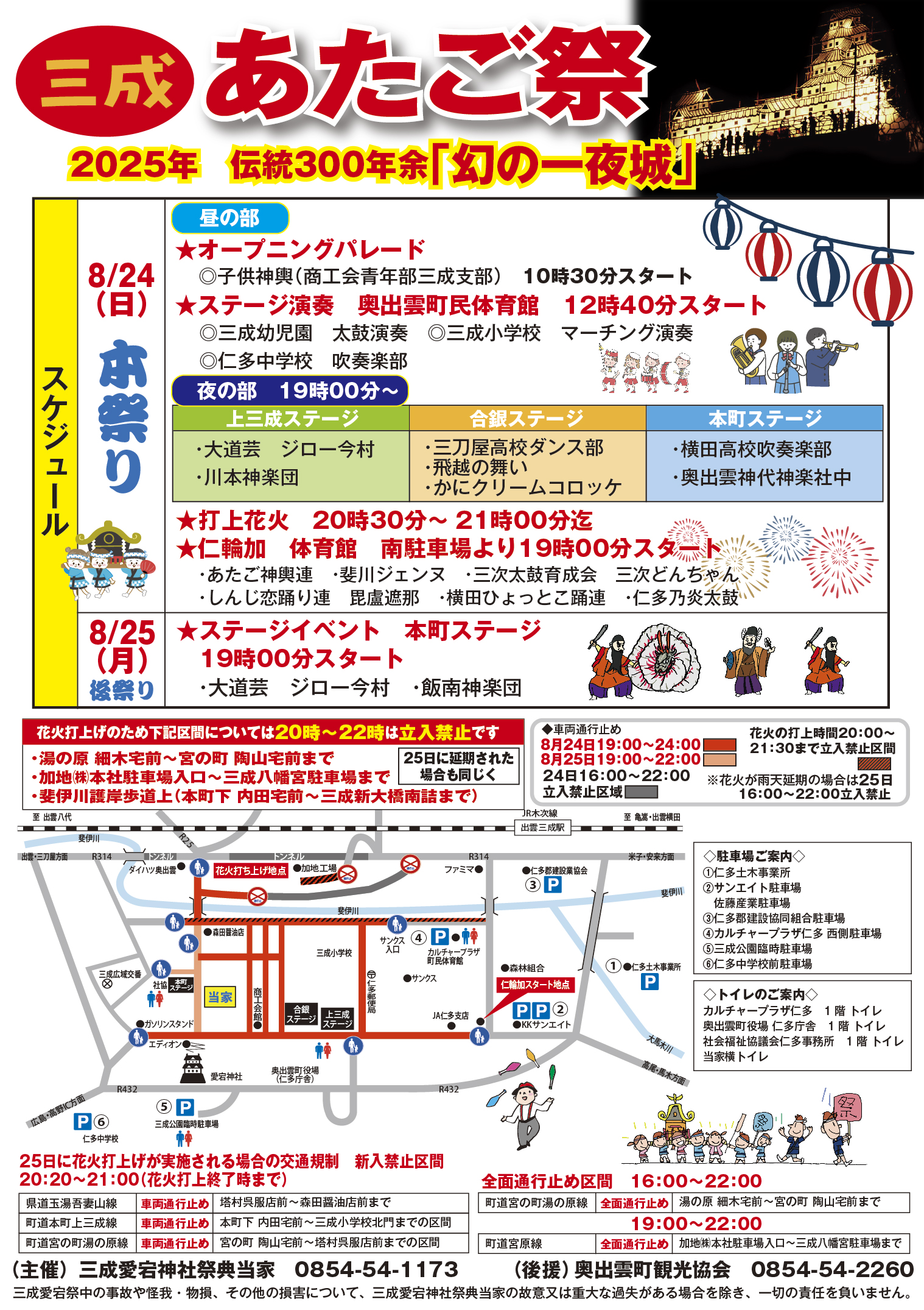 令和7年8月24,25日開催の三成あたご祭に関する情報です。